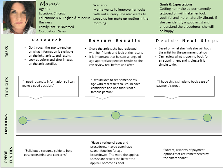 I looked at how some of the tattoo sites interacted with their users to identify what problems could occur with a permanent make up tattoo. One major problem FIA, could solve was better information and content. A major upset was "buyers' remorse" and decision making on the skills and experience of the tattoo artists.